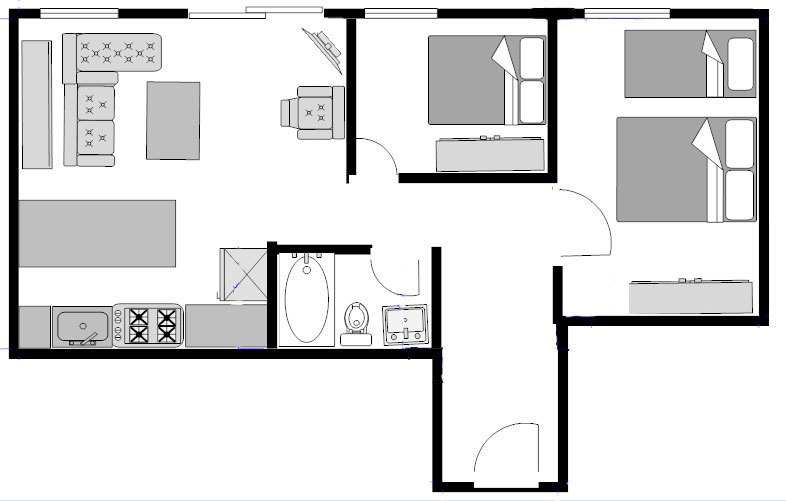-1 bedroom with 1 double bed + 1 single sofa bed